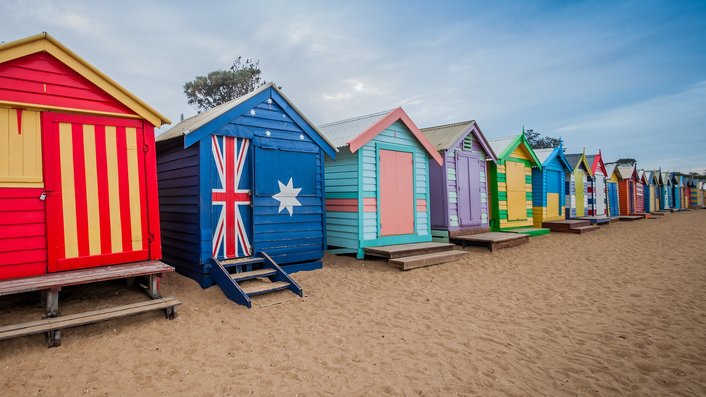 • View the colourful Brighton Beach Boxes.
