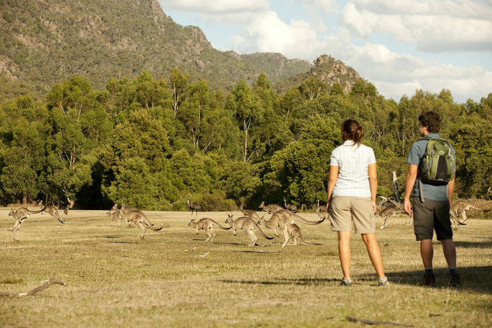 The Grampians are home to a wide range of native flora and fauna including kookaburras, kangaroos and wallabies as well as wildflowers and the unique Grampians Gum tree.