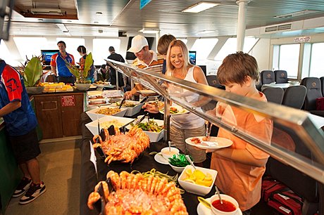 - Hot and cold buffet lunch with seafood, afternoon tea, on-board Wi-Fi access, free introductory snorkelling demonstration provided by a qualified instructor, glass bottom boat and semi-submersible coral viewing tours, touch some of the reef’s unique marine creatures in the marine touch tank, onboard reef ecology presentation by marine naturalist, children can enjoy the safety of the fully enclosed children’s wading pool, all snorkelling equipment provided and one Introductory Scuba Dive.